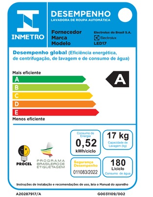 Lavadora Electrolux Led17 17kg Branca 220v